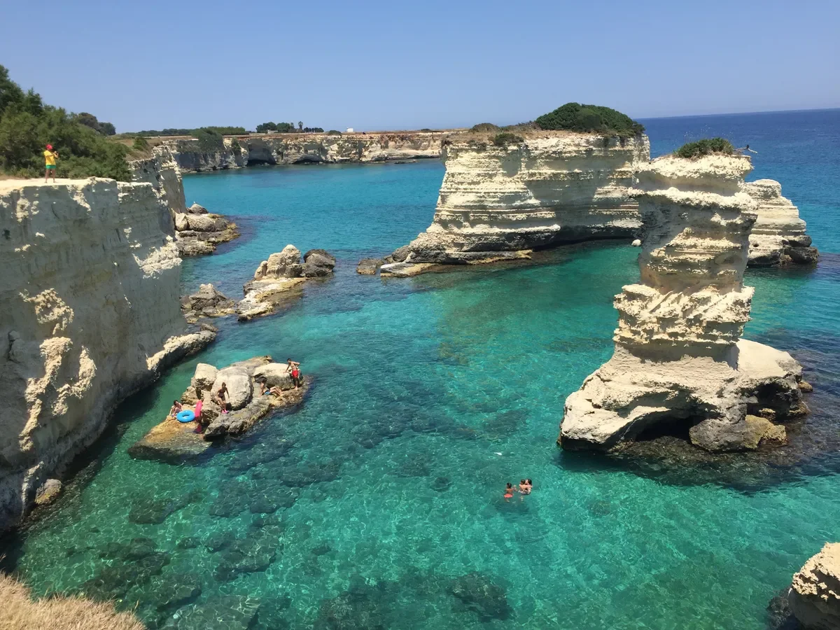 Torre Sant’Andrea is a breathtaking coastal spot on Puglia’s Adriatic coast, famous for its rugged limestone cliffs and clear turquoise waters. Natural rock formations and sea arches rise from the sea, creating a dramatic backdrop perfect for swimming, snorkeling, and photos. It’s quieter and more scenic than many beaches, with a relaxed, nature-rich atmosphere. A visit here feels like discovering a hidden gem along Salento’s stunning shoreline.