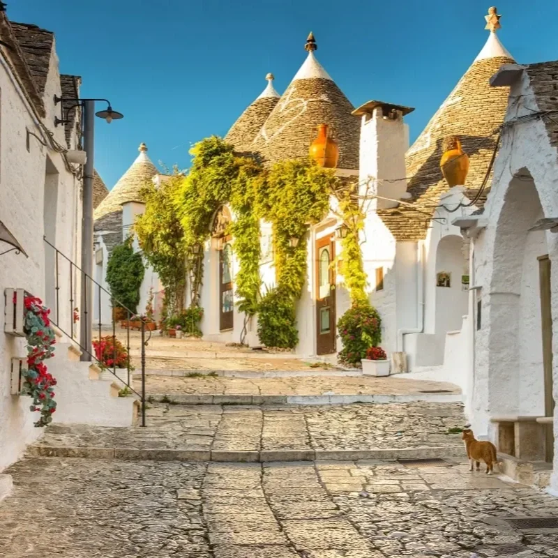 Step into a fairytale in Alberobello, famous for its unique trulli houses with cone-shaped roofs. Wander charming streets lined with these iconic white stone homes, explore local shops, and soak up the magical atmosphere of this UNESCO World Heritage town — a whimsical and unforgettable town.